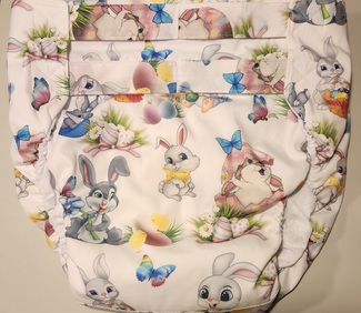 These are actual measurements, NOT pant sizes. Made out of exactly same components as baby diapers this diaper is soft, leakproof and washable. 100% cotton print fabric as outer layer, breathable polyurethane laminate - PUL (100% polyester) center layer and "alova suede" inner layer (100% polyester). Serged for superior durability. Sewn in soaker pad made out off 4 layers of super absorbent microfiber. Hidden elastic around the legs and in the back for snug fit. Hook & loop fasteners with fold back laundry tabs for a strong hold. FULLY washer and dryer safe (medium heat). Do not use bleach or fabric softener. Needs to be washed at least once before use.